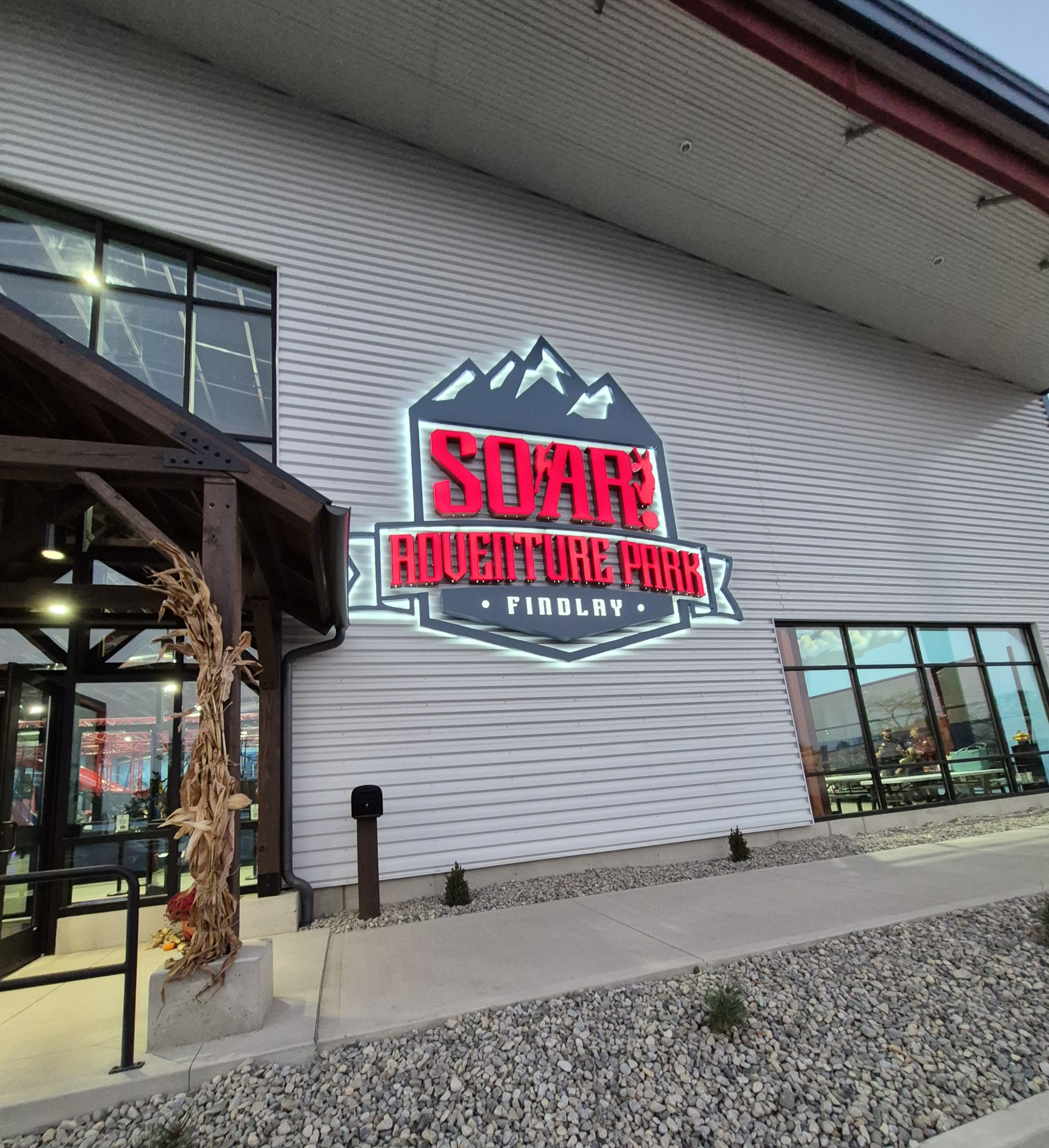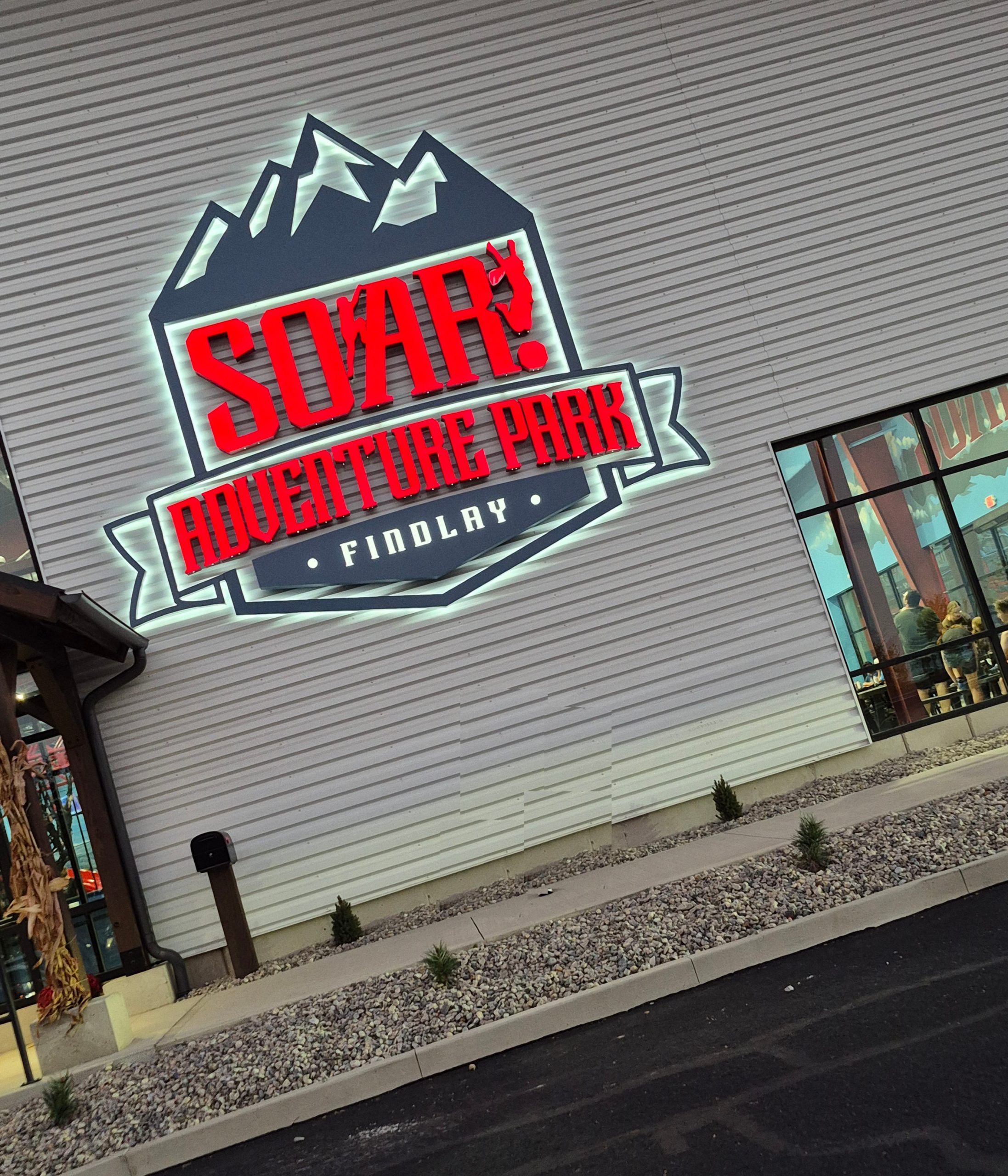 Front lit, or standard, channel letters have an aluminum back, aluminum sides (called returns) and acrylic faces. We start by using a router to cut a flat sheet of aluminum into the shape of the specified letter or number. The returns are then formed by bending a strip of aluminum around the back and fastening it to the back, forming a can. The can is custom painted to the specified color and fitted with a light fixture (usually LED). The acrylic face in the desired color is cut to fit the can and is attached with a trim cap to finish the process. Front lit channel letters are highly visible during the day or night and are the most popular type of channel letter.
