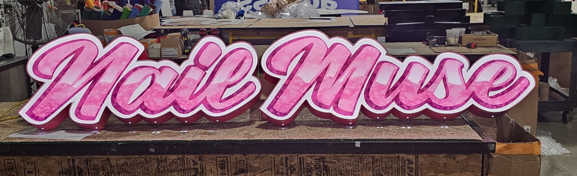 Faux neon channel letters are similar to standard channel letters, but the face is clear, exposing the neon. The inside of the can is also open to view, adding to the channel letter’s three dimensional appearance.